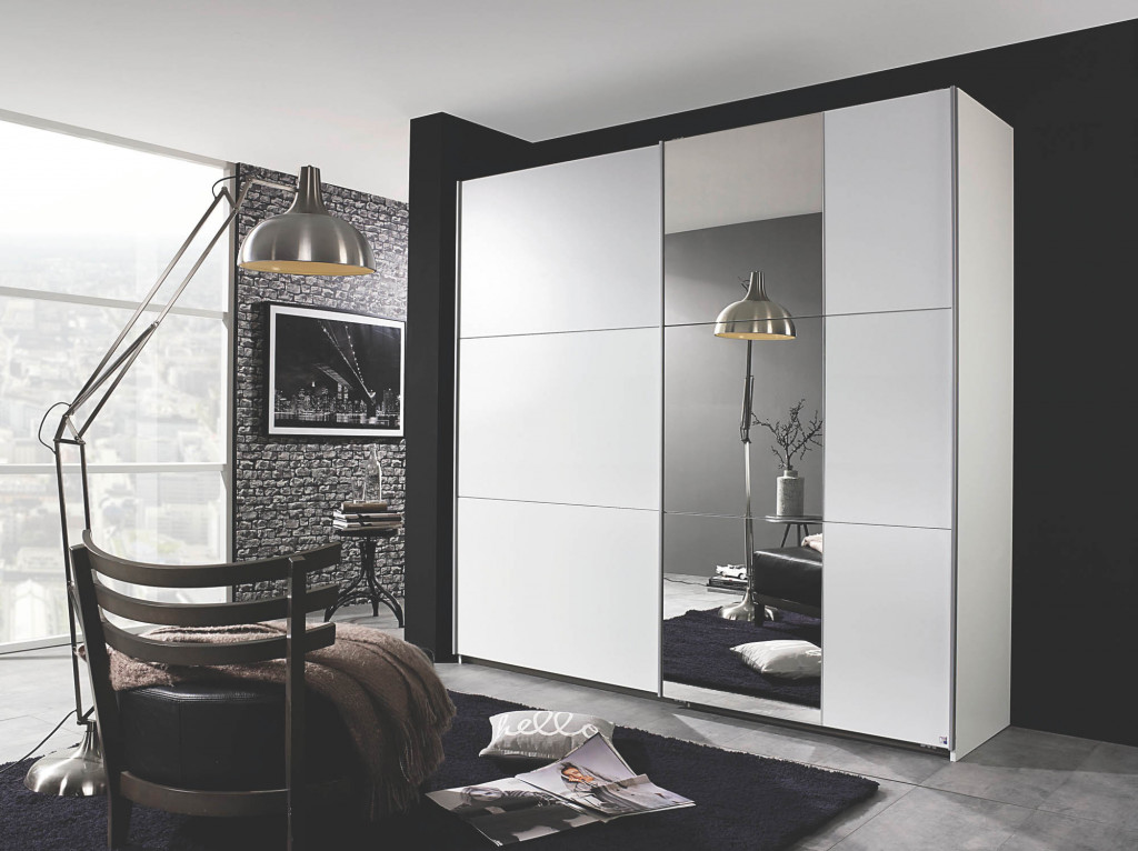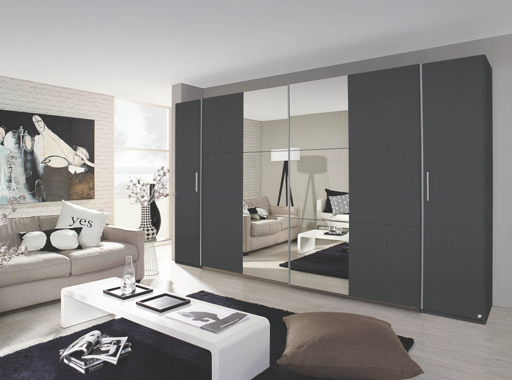 AD654.081I, Front/Korpus Dekor-Druck Eiche Artisan, Innen Texline, Griffleisten alufarbig, 4-türig, 2 Spiegeltüren, Teilspiegelfront, BHT ca. 268/210/60 cm, Raster Innen ca. 45/45/87/88 cm