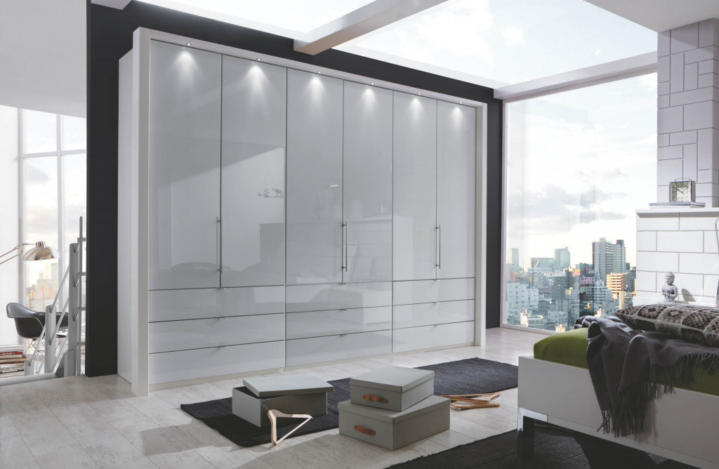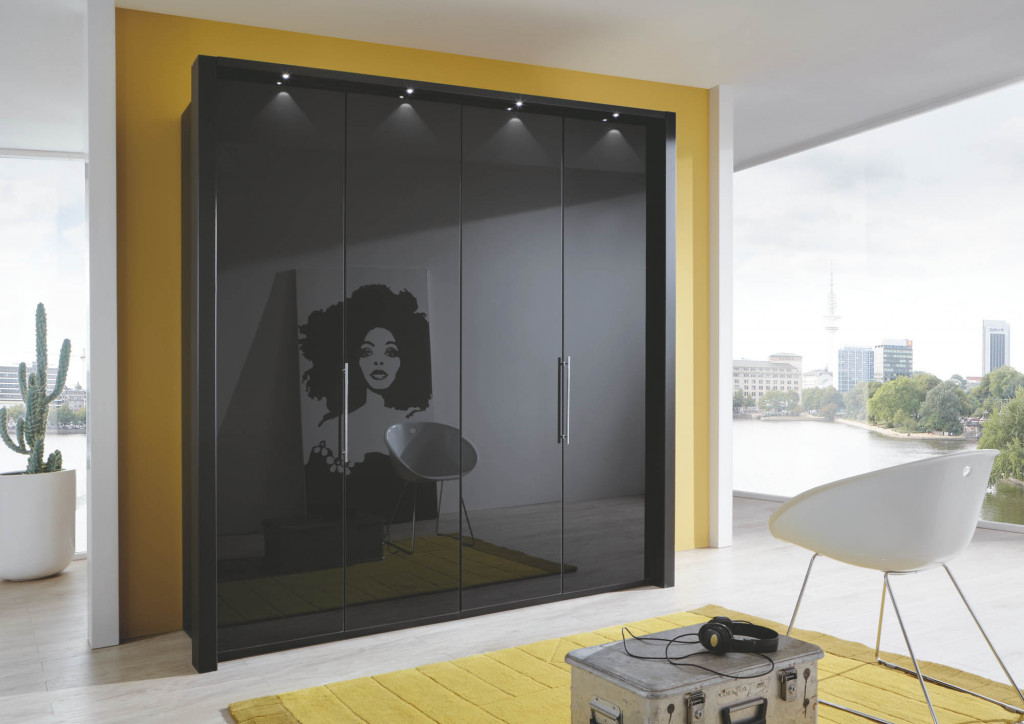 Unzählige Kombinationsmöglichkeiten machen dieses Panorama-Schranksystem so einzigartig. Wählen Sie für Korpus und Falttüren aus fünf Farben und kombinieren Sie die Front auf Wunsch mit Auflagen aus Parsol-Bronze-Spiegel oder Glas in vier attraktiven Farben. Die Fronten können Sie mit oder ohne Schubladen wählen.