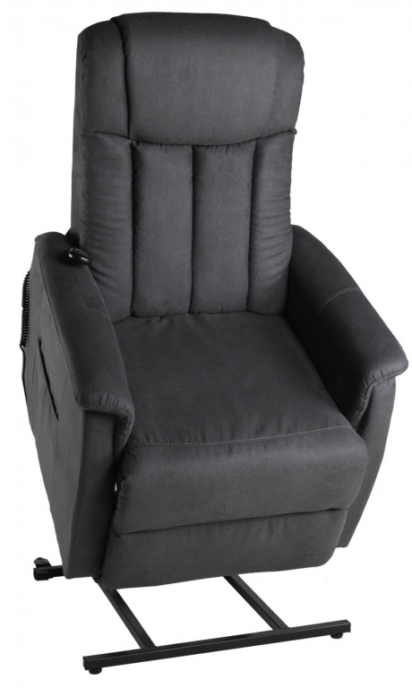 Sessel mit Motor und Aufstehhilfe, Struktur-Mikrofaser anthrazit - 100% Polyester, leichtgängige Liegefunktion inklusive Fußstütze elektrisch mittels Fernbedienung einstellbar, Stoppfunktion in jeder Sitzposition, elektrische Aufstehhilfe mit Fernbedienung, max. Belastbarkeit 115 kg, Klemmschutz für die Hände, Breite 77cm, Sitzbreite 48cm, Sitztiefe 54cm, Höhe 80-108cm
