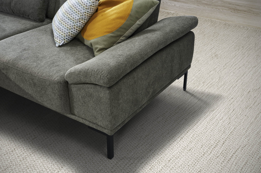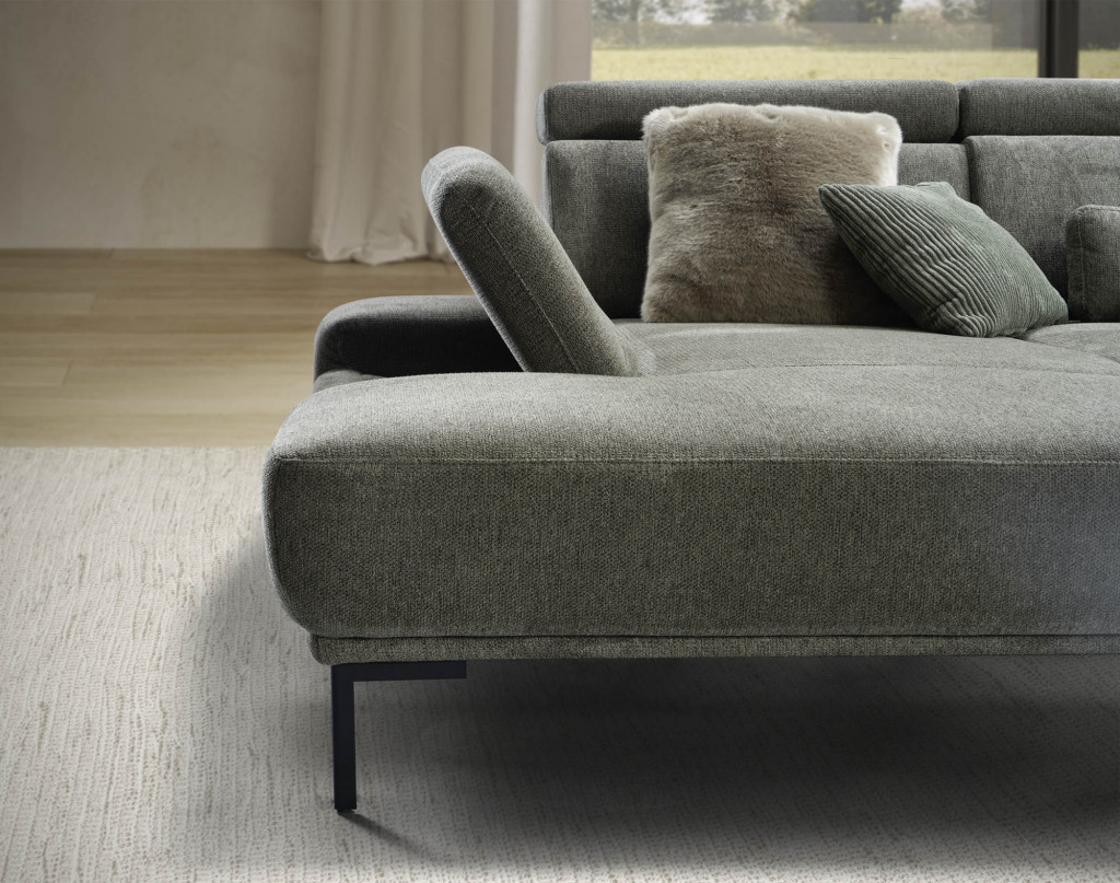 Stoff Mito Fb.156 hunter, Sitzqualität Soft, Sitzfläche S1 glatt, Rücken echt, Fuß 4.26-18 cm Farbe schwarz, Sitzhöhe ca. 44 cm, bestehend aus: 70100 - Longchair inklusive in der Sitzfläche integriertes klappbares Armteil, ca.115x185 cm 02111 - Element 2sitzig, Armteil fest, inklusive 2x Sitztiefenverstellung, ca.185 cm Stellmaß ca. 185x300 cm
