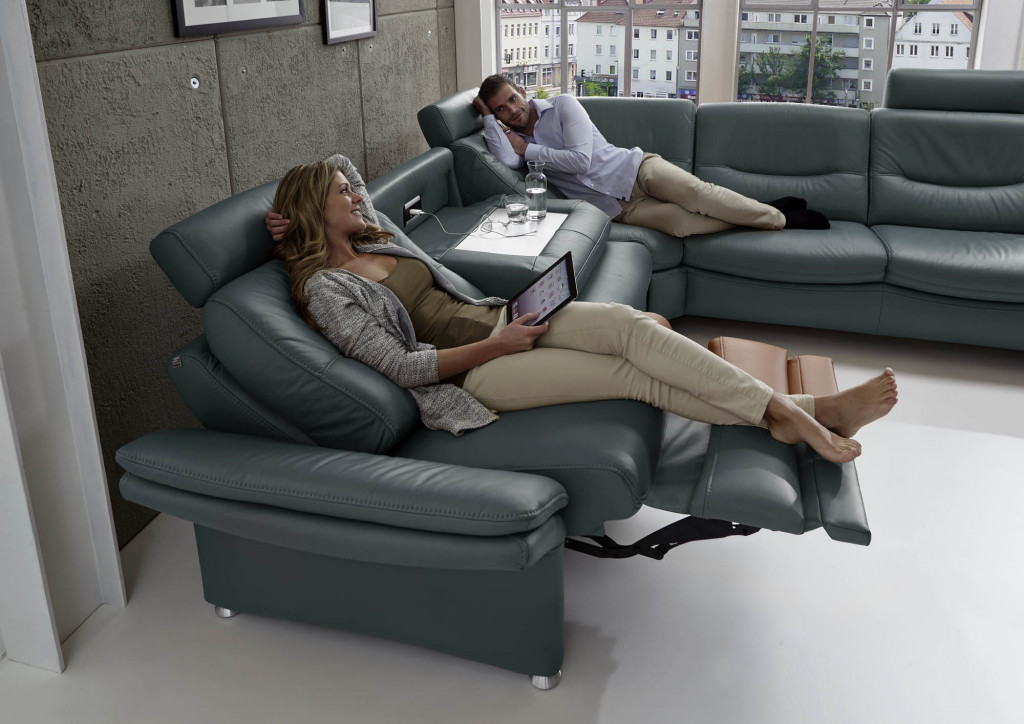 Leder Vivre (PG 58), Farbe ocean, Sitz F1 weich, Metallfuß, Sitzhöhe 45cm, Sitztiefe 53cm, bestehend aus: 2,5L - 2,5-Sitzer, Armteil links, BHT ca.172/89/92cm RE - Rundecke, BHT ca.100/89/100cm 2,5R - 2,5-Sitzer, Armteil rechts, BHT ca. 172/89/92cm Stellmaß ca.272x272cm