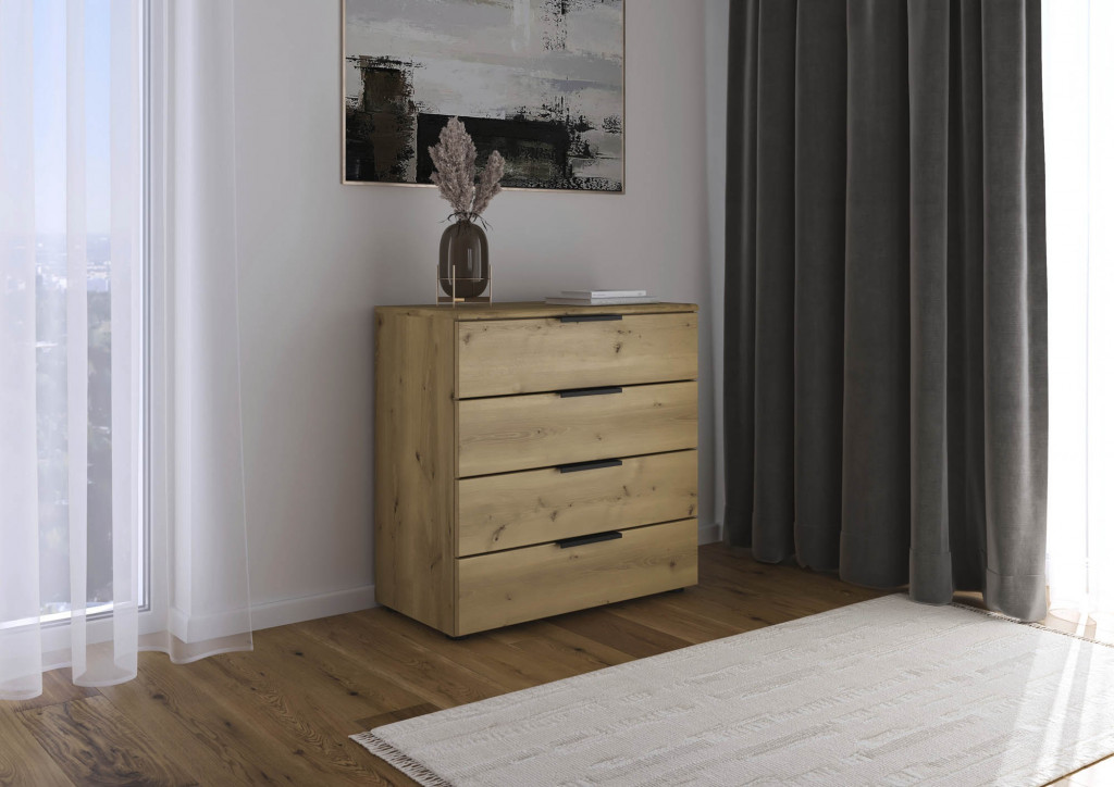 Nachttisch 614G - Korpus Alpinweiß, Front Glas seidengrau glänzend (PG2), Griffleisten chromfarben, BHT ca. 50/48/42 cm