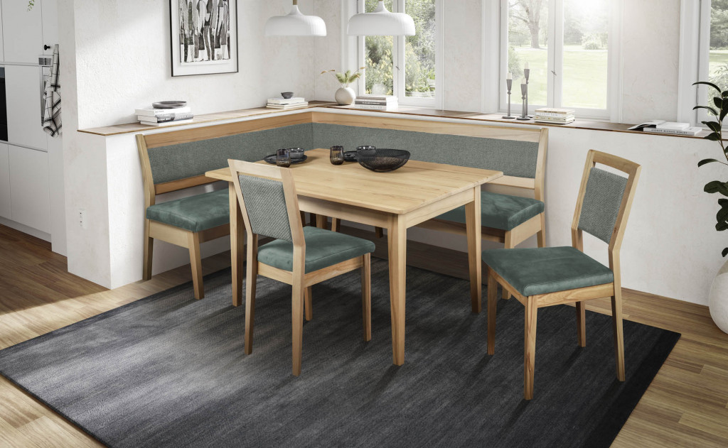 Diese vielseitige Eckbankgruppe passt sich Ihren Wünschen und Ihrem Raum perfekt an. Mit einem großen Typenplan bietet sie zahlreiche Möglichkeiten zur individuellen Gestaltung. Wählen Sie aus verschiedenen Ausführungen, um Stil, Komfort und Funktionalität harmonisch zu vereinen. Eine Lösung, die Ihren Essbereich zum einladenden Mittelpunkt Ihres Zuhauses macht.