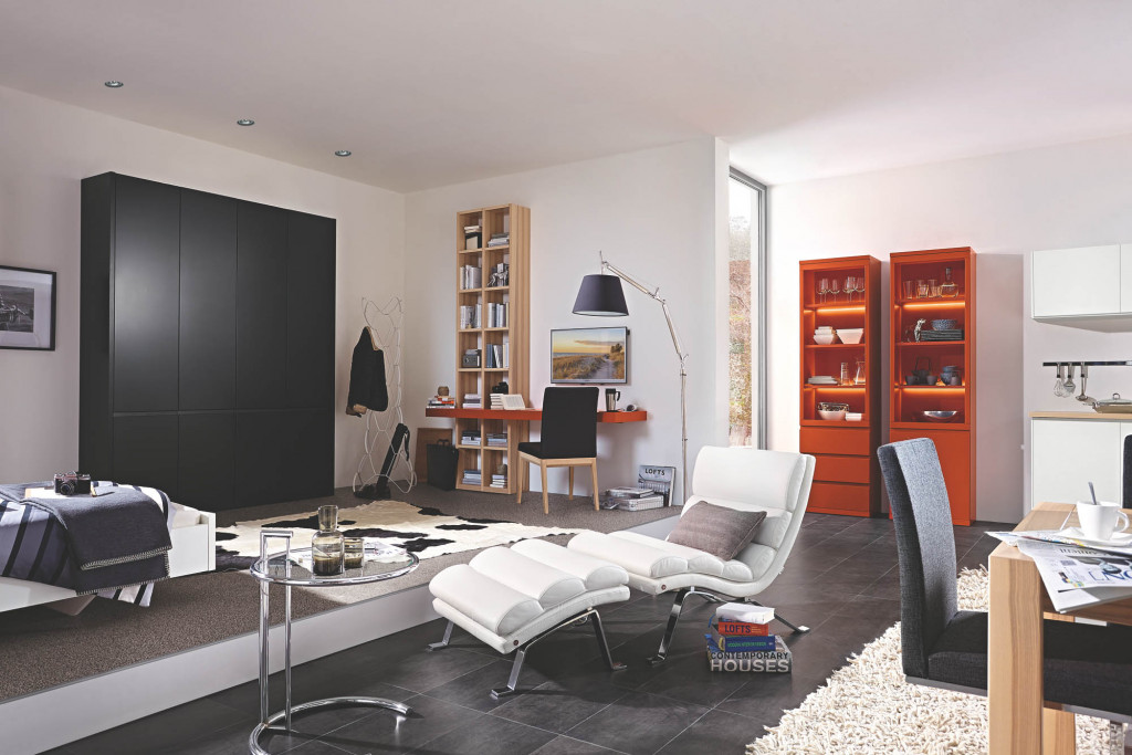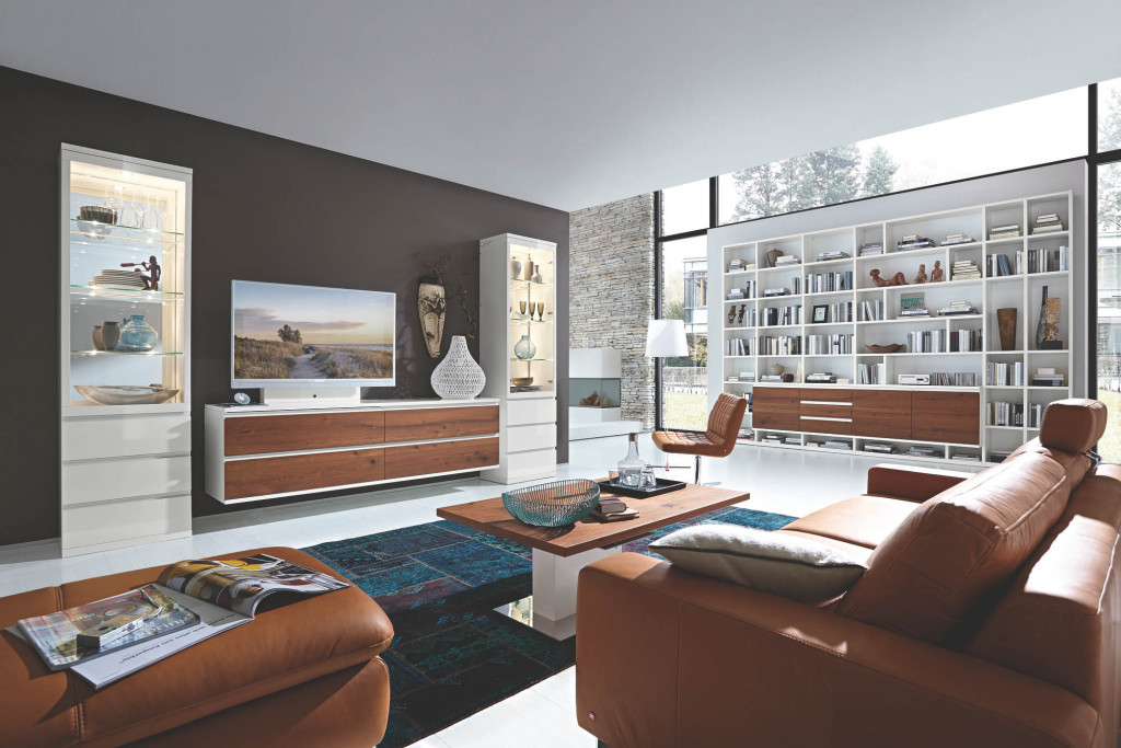 Lack weiß / Akzent Nussbaum Nova, Griffleiste Lack weiß, bestehend aus: