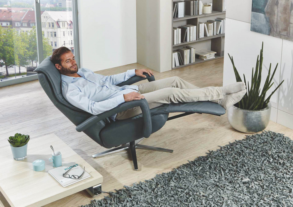 Relaxsessel - Starthilfe für Beinauflage und Rücken, Verstellung der Beinauflage durch einen außenliegenden Starthilfe-Hebel, stufenlose Rückenverstellung (pneumatisch) mit integrierter Sitzabsenkung inkl. Herz-Waage-Position, manuelle Kopfpolsterverstellung, BHT ca. 73/104/88-174 cm