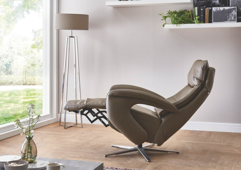 Relaxsessel - Verstellung der Beinauflage durch Körperdruck, stufenlose Verstellung der Rückenlehne durch Gasdruckfeder, individuelle Kopfpolsterverstellung manuell, BHT ca. 75/110/87-175 cm