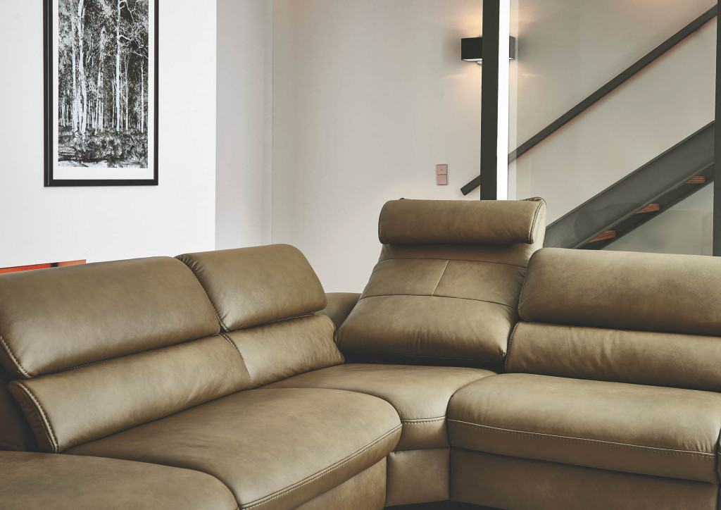 Leder Torro (PG 56), Farbe moos, Sitz F2 mittel, Rücken unecht, Metallfuß pulverbeschichtet schwarz, Sitzhöhe 45 cm, Sitztiefe 52-59 cm, bestehend aus: AhoL1,5KV - 1,5-Sitzer, Anstellhocker links, inklusive Kopfpolsterverstellung (Hochlehnkomfort und mehr Sitztiefe), BHT ca. 144/82-107/96 cm REKV - Rundecke, inklusive Kopfpolsterverstellung (Hochlehnkomfort und mehr Sitztiefe), BHT ca. 102/82-107/102 cm 2,5RKV - 2,5-Sitzer, Armteil rechts, inklusive Kopfpolsterverstellung (Hochlehnkomfort und mehr Sitztiefe), BHT ca. 178/82-107/96 cm Stellmass ca. 246 x 280 cm