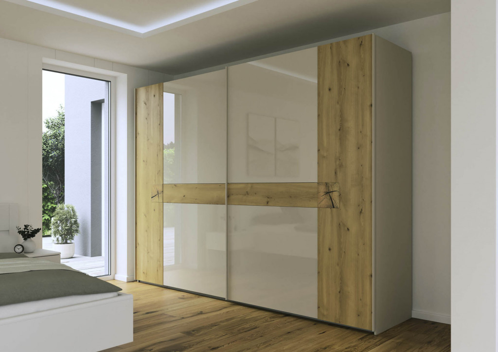 Schwebetürenschrank, 2-türig, BHT ca. 301/223/68 cm