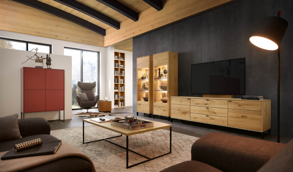 Front/Korpus Lack weiß, Griff Eiche sand, Sockel, bestehend aus: