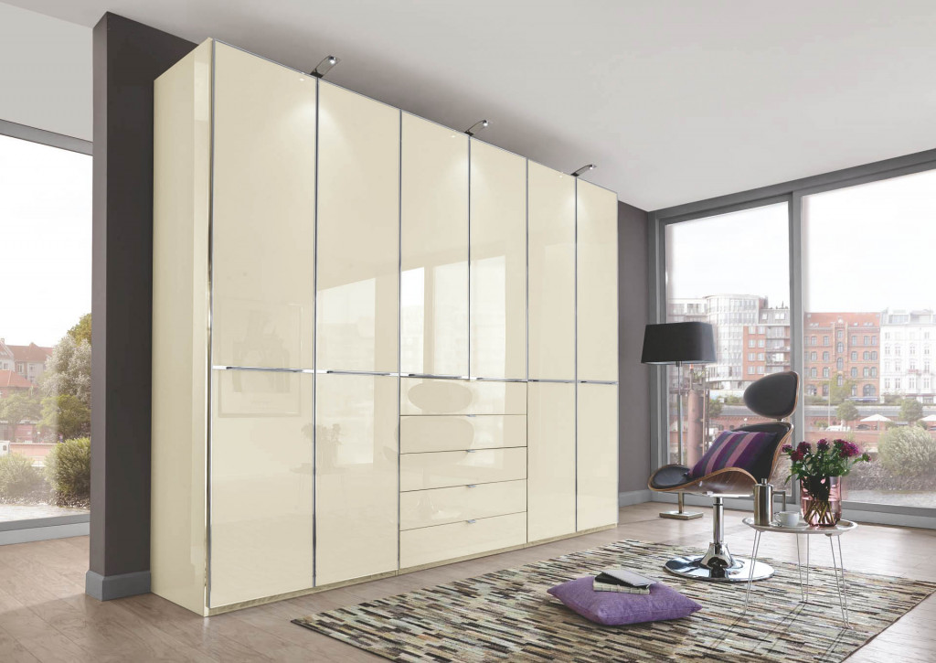 Unzählige Varianten an Drehtürenschränken, Funktionsschränken und Schwebetürenschränken mit Glas- Fronten und Spiegeltüren warten auf Sie. Für eine komplette Hochglanzoptik lassen sich auch die Seitenwände mit Glas-Auflagen verkleiden. Die Korpuselemente in 50 cm und 100 cm Breite sind beliebig erweiterbar bis zu einer Breite von 400 cm und mehr.