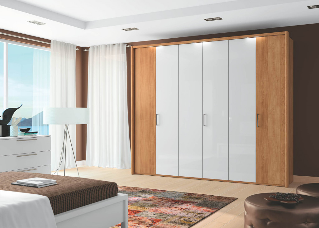 Front mit Bauchbinde, Front Lack weiß, Bauchbinde Wildeiche Riffelholz, Korpus Wildeiche (PG2), Griff N1 nickelfarbig, bestehend aus: 913008 - Schwebetürenschrank, 2-türig, Aufteilung 90/60/60/90 cm, inklusive Schließdämpfer, BHT ca. 301/230,2/68 cm 903009 - Kranzleiste, 19mm, 300 cm Breit 96003 - Wechsel zu echtholzfurnierten Griffleisten