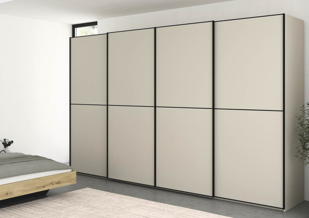 Gestalten Sie Ihren Schwebetürenschrank ganz nach Ihren Wünschen. Wählen Sie aus verschiedenen Front- und Korpus-Ausführungen, um Ihrem Raum eine persönliche Note zu verleihen. Auch die Griffleisten können Sie in unterschiedlichen Designs anpassen, um den perfekten Akzent zu setzen. Mit den wählbaren Breiten passt sich der Schrank ideal an Ihren Raum an und bietet dabei großzügigen Stauraum. Ein Möbelstück, das sich durch Individualität und zeitlose Eleganz auszeichnet.